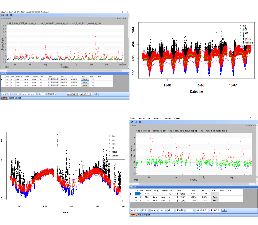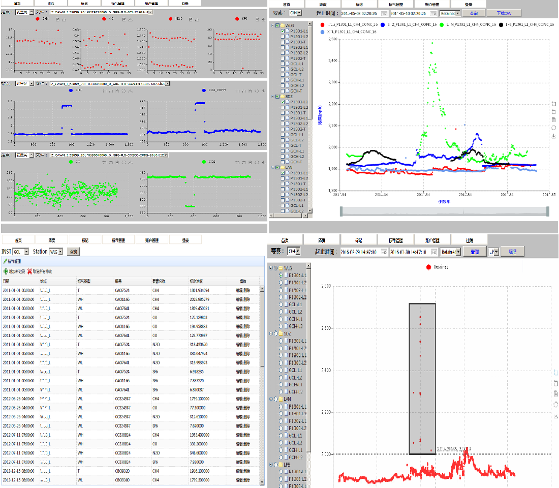 温室气体数据处理系统可实现对PICARRO,双通道色谱等多种观测仪器的数据采集、上传和标气自动校正计算、数据初级质控和本底数据筛分等功能,实现从仪器原始数据到最终浓度数据的自动化处理。